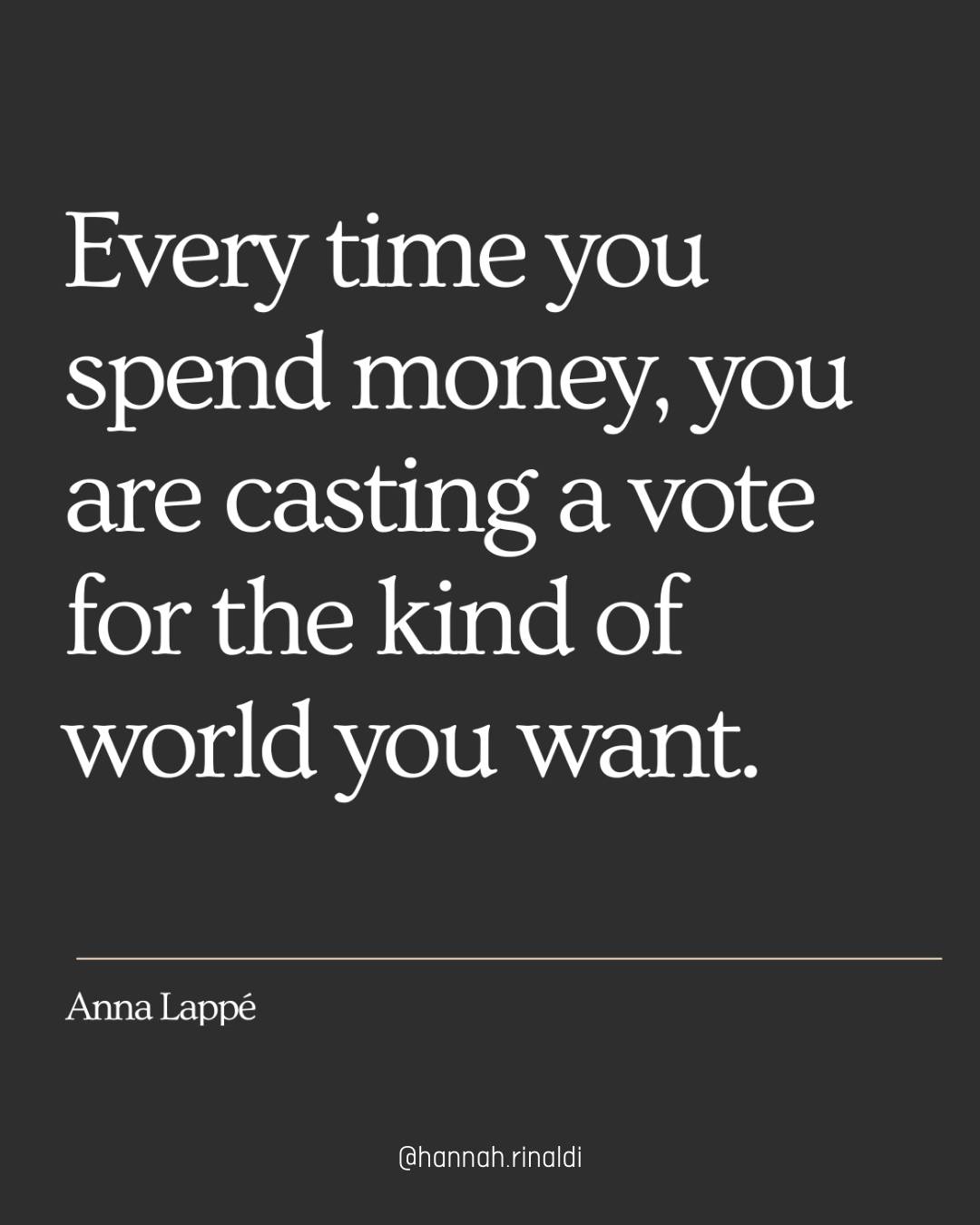 "Every time you spend money, you are casting a vote for the kind of world you want."